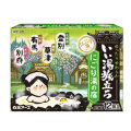 4種類の風情漂う香りと湯色で、にごり湯の温泉気分を楽しめます。 温泉成分が温浴効果を高めて血行を促進し、疲労回復や肩のこり等に効果があります。 保湿成分配合で、しっとりした湯上り感です 4種類の風情漂う香りと湯色で、にごり湯の温泉気分を楽しめます。 温泉成分(炭酸水素ナトリウム、硫酸ナトリウム)が温浴効果を高めて血行を促進し、疲労回復や肩のこり等に効果があります。 保湿成分(チンピエキス、ハトムギエキス)配合で、しっとりした湯上がり感です。 北海道/乳緑色の湯 登別:湖畔を包む檜の香り 群馬/乳黄色の湯 草津:山々に実る柚子の香り 兵庫/乳橙色の湯 有馬:甘く漂う花梨の香り 大分/乳桃色の湯 別府:ほんのり華やぐ桜の香り ※本品は、温泉の湯を再現したものではありません <効能> 疲労回復、肩のこり、腰痛、リウマチ、冷え症、しもやけ、にきび、痔、ひび、あかぎれ、荒れ性、あせも、しっしん、神経痛 <使用方法> 家庭用浴槽にお湯(約200L)を張ってから、本品1包(25g)を入れ、よくかき混ぜて入浴してください。 本品と他の入浴剤は併用しないでください。 小児の手の届かない所に保管してください。 入浴以外の用途には使用しないでください。 高温多湿の場所に保管しないでください。 アルミパック開封後はすぐにお使いください。 <使用上の注意> <身体について> 皮フあるいは体質に異常がある場合は医師に相談してご使用ください。 使用中や使用後、皮フに発疹、発赤、かゆみ、刺激感等の異常が現れた場合、使用を中止し、医師にご相談ください。 本品は食べられません。万一飲み込んだ場合は、水を飲ませる等の処置を行ってください。 <浴槽について> 浴槽・風呂釜をいためるイオウは入っておりません。 浴槽の汚れは早めに浴室用洗剤で落としてください。時間がたつと落ちにくくなり、入浴剤の色素が付着して色がつくこともあります。 <残り湯について> 残り湯は洗濯に使えますが、すすぎは清水をお使いください。 着色するおそれがあるので、次の場合は使わないでください。 (柔軟仕上げ剤との併用、つけおき、おろしたての衣類) 植物への水やりに使わないでください。 <にごり湯成分についての注意> 全自動給湯器、24時間風呂の場合、機種によってはご使用になれない場合があります。 お使いの機種の説明書を確認の上ご使用ください。 木製の風呂の場合、白濁成分がとれにくい場合がありますのでご使用をお避けください。 使用後は風呂釜内部や循環孔のフィルター等をよく洗い流してください。 (風呂釜内部の湯あか等に白濁成分が一部付き、循環孔から浴槽内へ出ることがあります。) 浴槽のまわりや底に残った白濁成分は、よく洗い流してください。 |