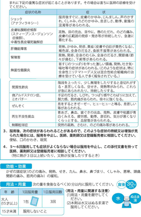15才以上1回1包、1日3回食後なるべく30分以内に服用してください。