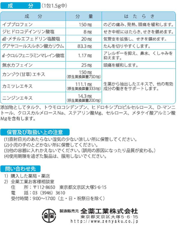 のどの痛み・発熱・せき+たん のどからくるつらい風邪に<イブプロフェン配合の総合感冒薬> |