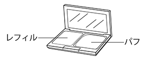 マキアージュ ドラマティックフェイスパウダー(レフィル)に内蔵されている[レフィル][パフ][透明フィルム]をセットして使います。