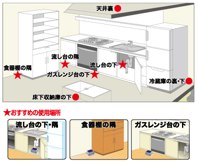 ■有効成分ジフェチアロールを配合!1度食べれば効くので、警戒心の強いネズミでもしっかり駆除 ワルファリン等は、3~5日連続して食べさせることが必要ですが、ジフェチアロールは、ひとくち(一度)食べれば、優れた効果を示します。 これを食べたネズミは内出血をおこし、数日かけて徐々に死に至りますので、他のネズミに警戒心を抱かせません。 ■トレータイプ シールをはがしてそのまま置ける防水トレー入りなので、濡れたところや汚れたところにも置けます。 ■抵抗性の強いスーパーラットにもしっかりと効く! クマネズミ、ドブネズミ等の大型ネズミはもちろん、これまで効きにくかったスーパーラット(ワルファリン抵抗性ネズミ)など、どんなネズミにもしっかり効きます。 <効果・効能> ネズミの駆除 <有効成分> ジフェチアロール0.0025%(w/w) <使用方法> ネズミのよく出る場所数箇所に、シールをはがして、容器ごと適量(約10g~30g)を配置してください。容器には15gの薬剤が入っています。 ネズミがたくさんいる場合は、多くの場所に設置するとより効果的です。さらに、壁沿いに置くとより効果的です。 薬剤のなくなったところは補充し、食べなくなるまで続けてください。 ネズミは隠れ場所へエサを持ち帰り、貯える習性(貯食性)があります。 屋外に配置する際は、薬剤に直接光が当たらないよう、また雨で濡れないようにしてください。 食いつきの悪いときは、コーン油、ソースなどを顆粒に数滴ふりかけると食いつきが良くなります。 ![]() |
